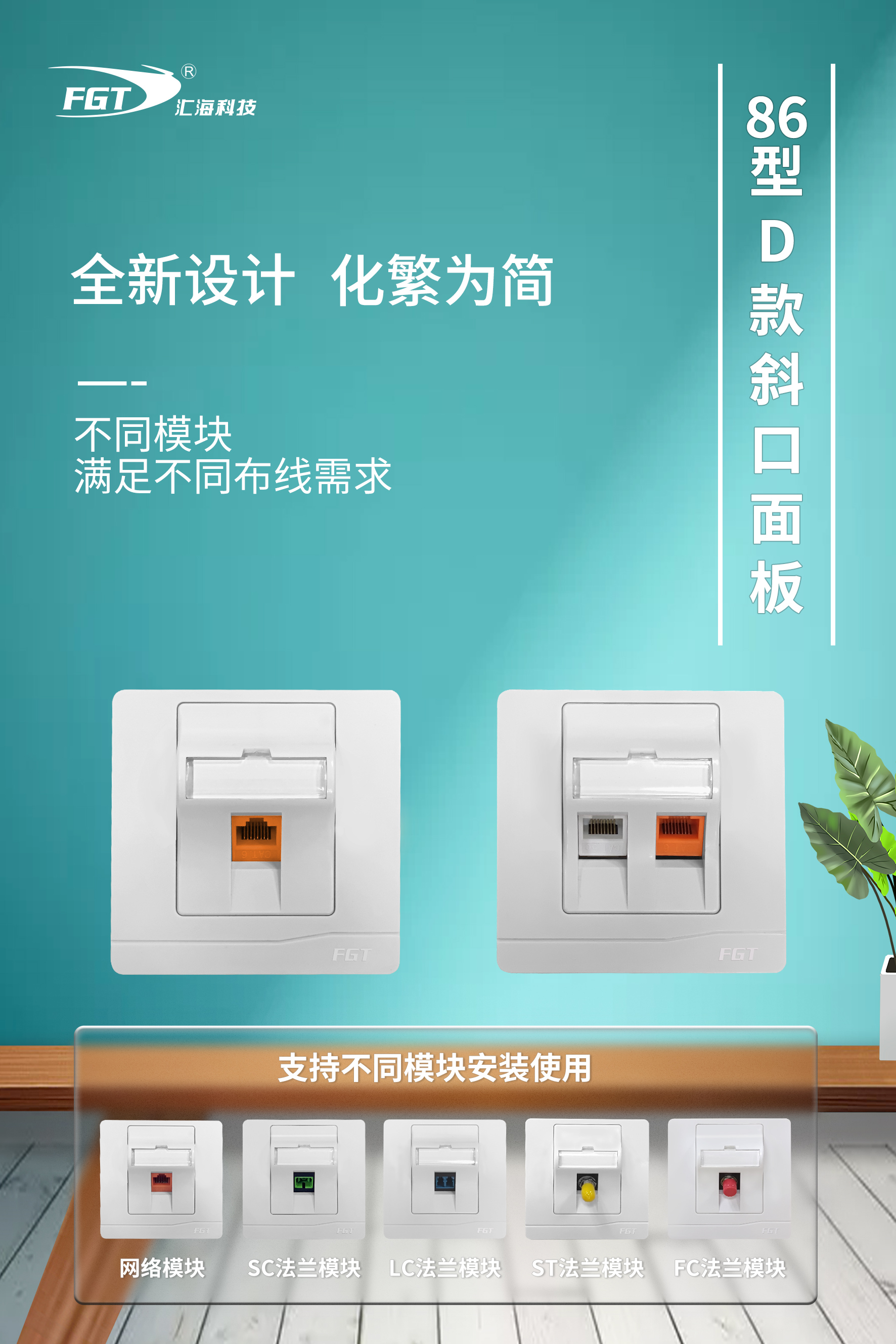 86型國(guó)際標(biāo)準(zhǔn),面板表面看不見螺絲設(shè)計(jì),適合多類型模塊安裝,應(yīng)用于工作區(qū)布線子系統(tǒng)所有面板都帶有保護(hù)門,扣位式面板設(shè)計(jì)防止灰塵污染,嵌入式面框,安裝方便。